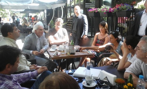 Антоанета Цонева от „Протестна мрежа" публикува във фейсбук профила си снимки от срещата с текст: „#160от240, разговор с Местан за квотите в камарите на прокурори и съдии във ВСС, кафе без шекер".